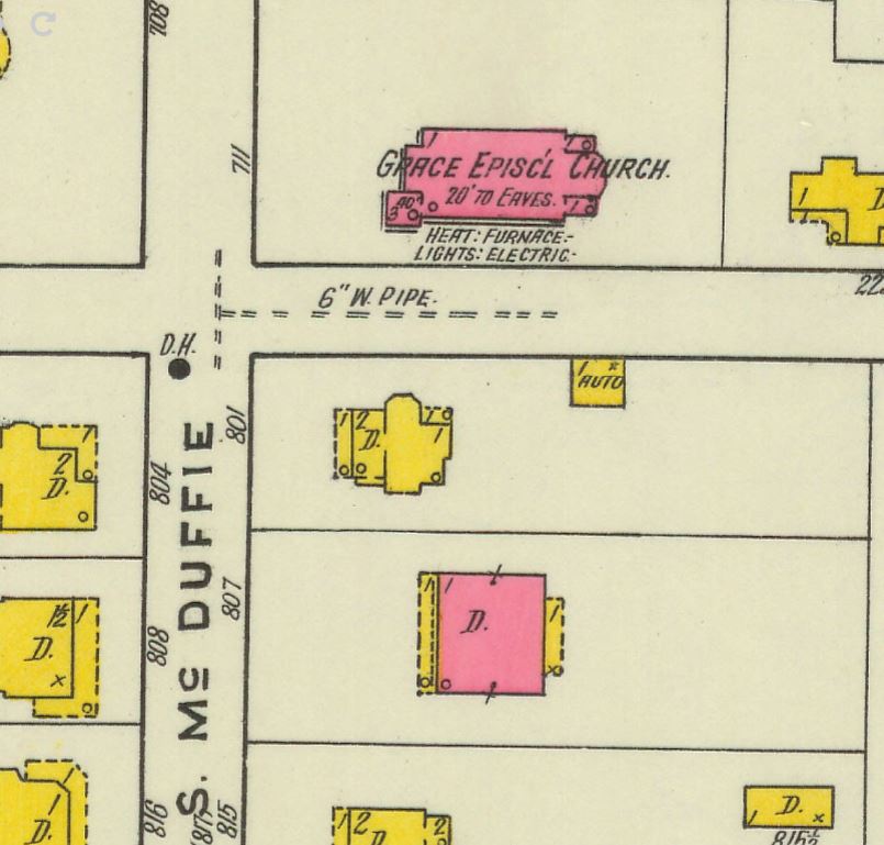 Note on this 1918 Sanborn Map, the Bolt House remains at the corner, #801 S. McDuffie Street.