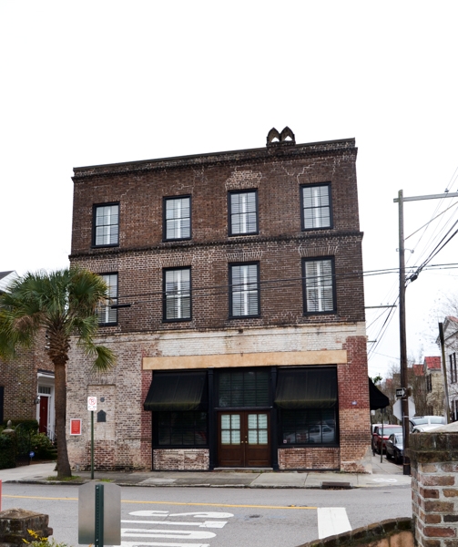 “Charles W. Seignious acquired the lot with or without this three-story brick store and dwelling in 1851 from Samuel Wagner. The structure is notable for the retention of its early storefront pattern, especially the stone lintel and the cast-iron pilasters. The first-floor shop windows are a conjectural restoration by Historic Charleston Foundation carried out when it acquired the property in 1965. A walled-up entry door at the northeast corner of the structure formerly gave access to the floors above. Similar access survives through the remaining doors on the rear of the west elevation.”