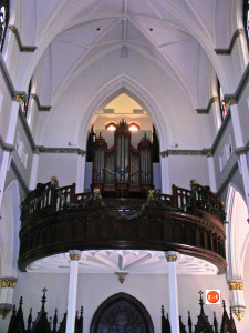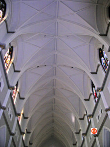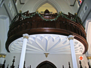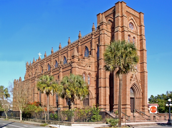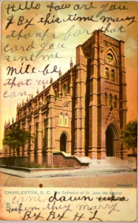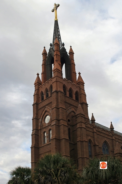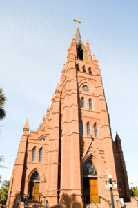 “Although the cornerstone was laid for this stippled brownstone cathedral in 1890, it is actually the second such building to occupy the site. The Right Reverend John England was consecrated in St. Finbar’s Cathedral in Cork, Ireland, and arrived to take up his duties over the diocese of the Carolinas and Georgia early in 1821. England purchased Charleston’s favorite pleasure garden, the “New Vauxhall” gardens, shortly after his