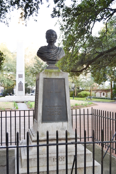 “Originally laid out as part of the City Square following construction of the Bank of the United States building (city hall) but developed in its present form as part of a civic improvements program during the administration of Mayor William Ashmead Courtenay, this park was renamed in honor of George Washington to commemorate the centenary of the victory at Yorktown. In addition to the large granite obelisk in memory of Confederate soldiers, a bronze bust of the poet Henry Timrod and more modern commemorations of important figures such as Rachel Jackson, mother of President Andrew Jackson, and Francis Salvador, a member of the South Carolina Provincial Congress who was the first Jew elected to public office in America, ornament the park’s double axial walks and east wall. The yellow brick statue base on the west end formerly supported the 1767 statue of William Pitt, moved here from the Orphan House grounds in the 1880s and relocated to The Charleston Museum one hundred years later.”