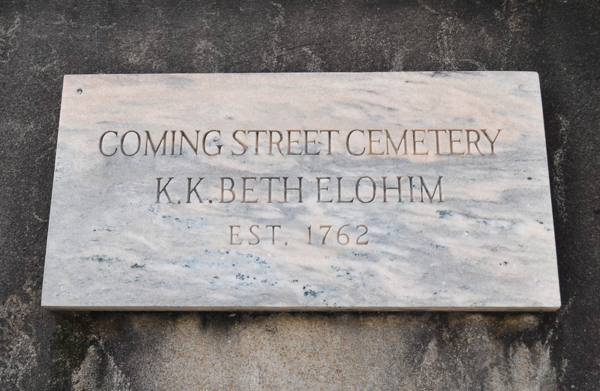 The Coming Street Cemetery, established in 1762, is privately owned by Kahal Kadosh Beth Elohim (Holy Congregation of the House of God), a congregation whose synagogue is itself a National Historic Landmark. This