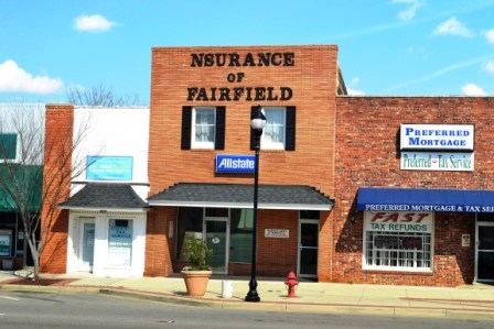 In 1912 from the corner from Washington Street to this location lists numerous business including: the Southern Express Office, general store, Hardin and Queens, Queen’s Jewelry and other misc. businesses. This location is listed as #53 South Congress Street and most likely was the location of Queen’s Jewelry store, a brick commercial building. Insurance of Fairfield has operated at his location for many years. Provident Community Bank has also been housed at this location.