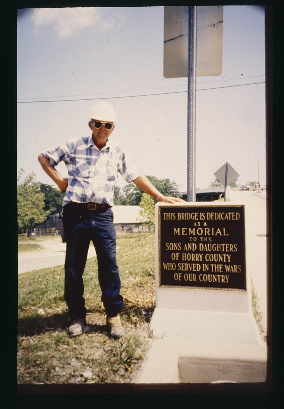 Passengers bought their tickets here and then ferried across the river to board the train to the beach. (2) The warehouse beside the bridge was built circa 1880 and was the riverfront terminal for the Waccamaw Line of Steamers, which provided regularly scheduled transportation of people and cargo between Conway and Georgetown along the Waccamaw River. Burroughs & Collins Co. operated the steam-powered side wheel riverboats until 1919. (3) The Waccamaw River Memorial Bridge was opened on April I, 1938, and is 1.487 feet long. It required 190,000 man-hours to build at a cost of $370,000. It is dedicated to all from Horry County who have served in defense of their country. (4) On the western side of the bridge is an interesting trapezoidal shaped warehouse built circa 1900 which was used for agricultural purposes.” Information from Conway’s Historical Trail Brochure – Revised by Ben Burroughs, 2011