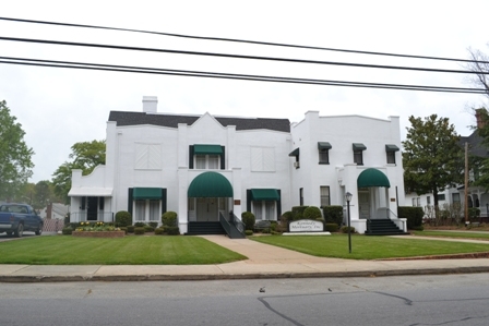 Kennedy Mortuary was started on the public square in 1885 by Clarence and Hugh Kennedy. This building was originally the home of Colonel William R. Richey and his family. An attorney, Colonel Richey was Mayor of Laurens from 1905-1920 and presided as president, treasurer, and manager of the Laurens Telephone Company. Built in the early 1900’s, the house was constructed of wood. After Kennedy Mortuary moved here in 1946, concrete blocks were used to build new outside walls that were then stuccoed. The house has two stories and a basement where the Richey servants lived. Now the basement is used for limousines and funeral coaches. [Courtesy of the Laurens Museum]
