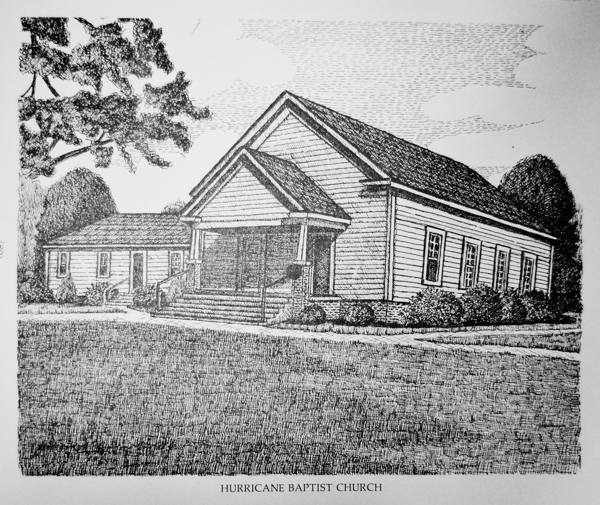 Before the completion of their first building a severe storm swept across the area and leveled the unfinished house of worship. The twenty charter members started the building anew and named the completed structure the Hurricane Baptist Church.