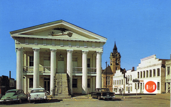 Image of the courthouse square featuring the lovely old Courthouse. Image courtesy of the Wingard Postcard Collection