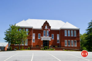 College and Adger College. It is one of the few surviving, relatively intact, early twentieth century brick school buildings still in use today in the county. The entire building is constructed of brick and rests on a brick foundation, with a raised basement under the two earliest portions of the building. These two early portions of the building have a hip roof with hip knobs and are covered with stamped sheet-metal shingles. The central section of the façade features a central projecting pavilion topped by a curvilinear gable. The auditorium is a one-story, six-bay brick building which extends from the north wall of the main school building. The classroom addition is a one-story, one-bay brick building which extends from the north wall of the auditorium. Listed in the National Register February 13, 1992.