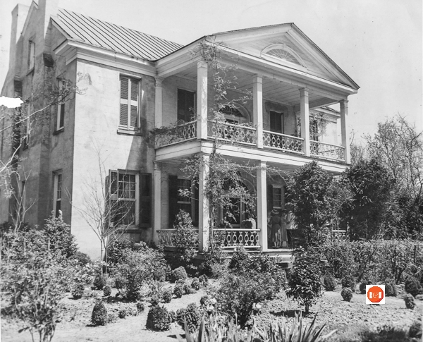 (Gov. William H. Gist House) Rose Hill was built between 1828 and 1832. After 1860, the brick was covered with stucco and two-tiered back and front piazzas were added. The classically inspired house features more refined ornamentation than usually found in upcountry houses of the period. Notable interior features are spiral staircase, doors, moldings and fireplaces. The house is surrounded by boxwoods, rose gardens and magnolias, enclosed by a cast-iron fence. Rose Hill’s original owner and builder, William H. Gist, represented the Union District in the South Carolina Legislature from 1840-44, and in the South Carolina Senate from 1844-56. He served as Senator and Lieutenant Governor from 1848-50 and Governor from 1858-60. Gist effected the Secession Convention that brought about the Ordinance of Secession, of which he was a signer. The property at present is Rose Hill Plantation State Historic Site comprising the house, outbuildings, and forty-four acres of land. Listed in the National Register June 5, 1970. [Courtesy of the S.C. Dept. of Archives and History]