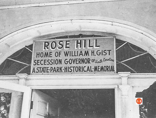 It is said that at one time one hundred old- fashioned roses bloomed in Governor William Henry Gist’s garden, and it was from this garden that the house and plantation were named. Governor Gist built this two-story brick house in 1828 on a hilltop near Tyger River about nine miles from Union Court House. The house is built of rose-colored brick. It has a pedimented portico, front and rear piazzas, and an elliptical fanlight above the entrance. A brick walk of herringbone pattern leads from the rear to slave quarters and the kitchen. In 1960 the General Assembly appropriated funds to purchase Rose Hill and forty-four acres of land which is maintained and operated by the State Park Commission and Forestry as a Historical Memorial.