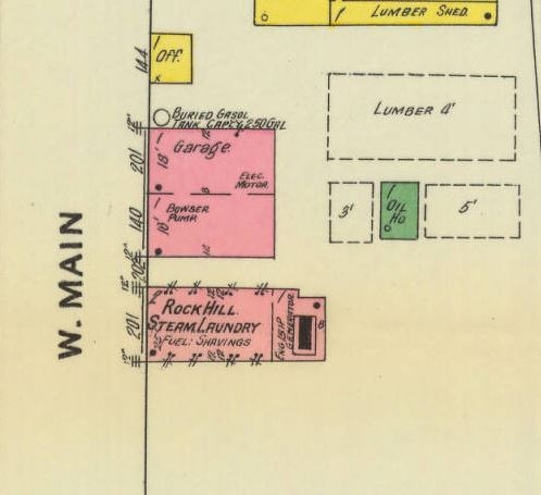 1905 – Sanborn Map diagram showing the location of the laundry on West Main Street.